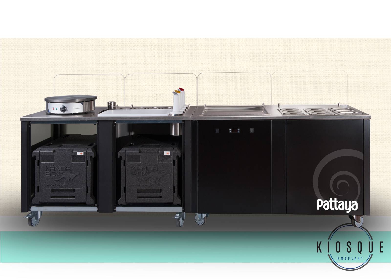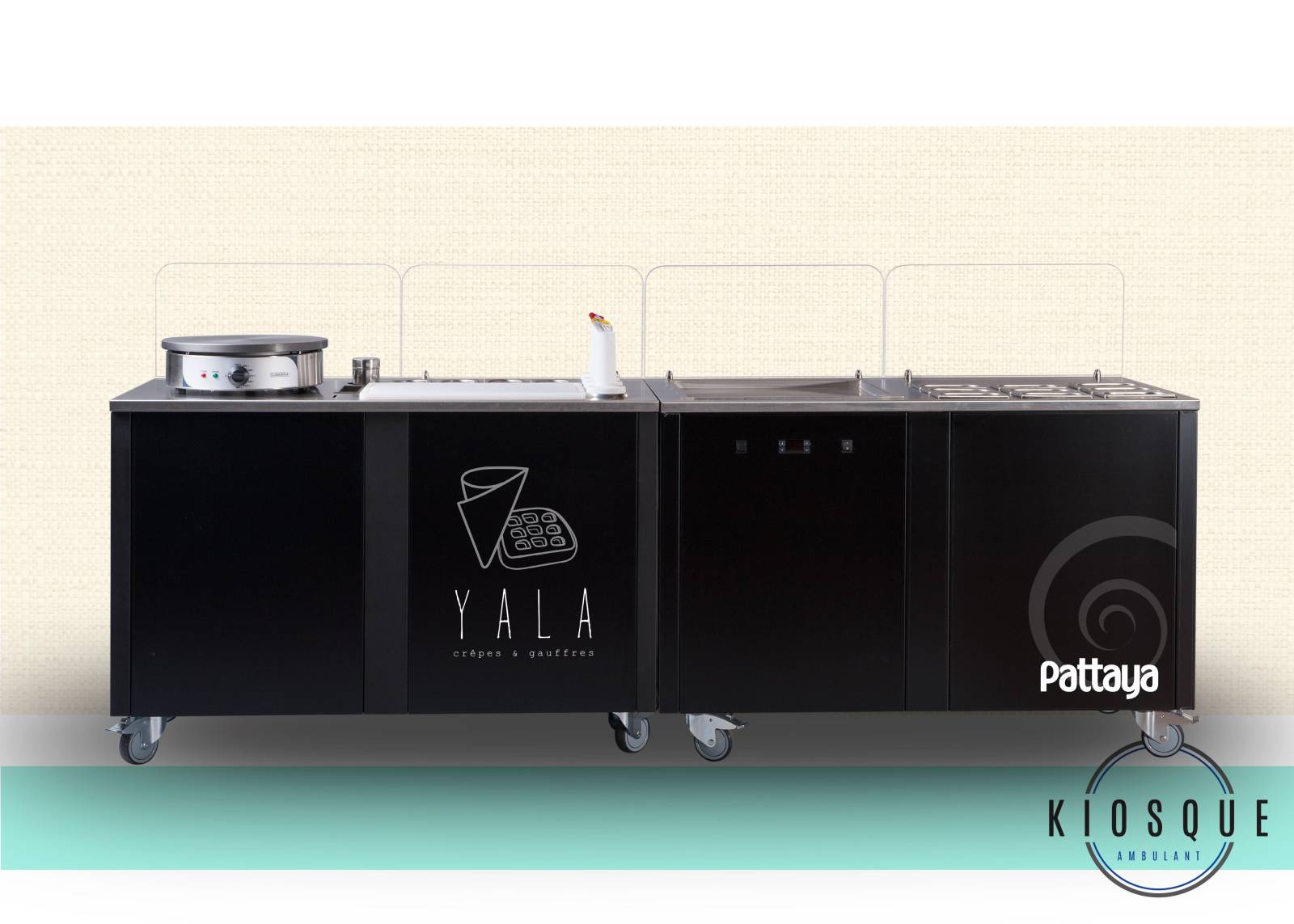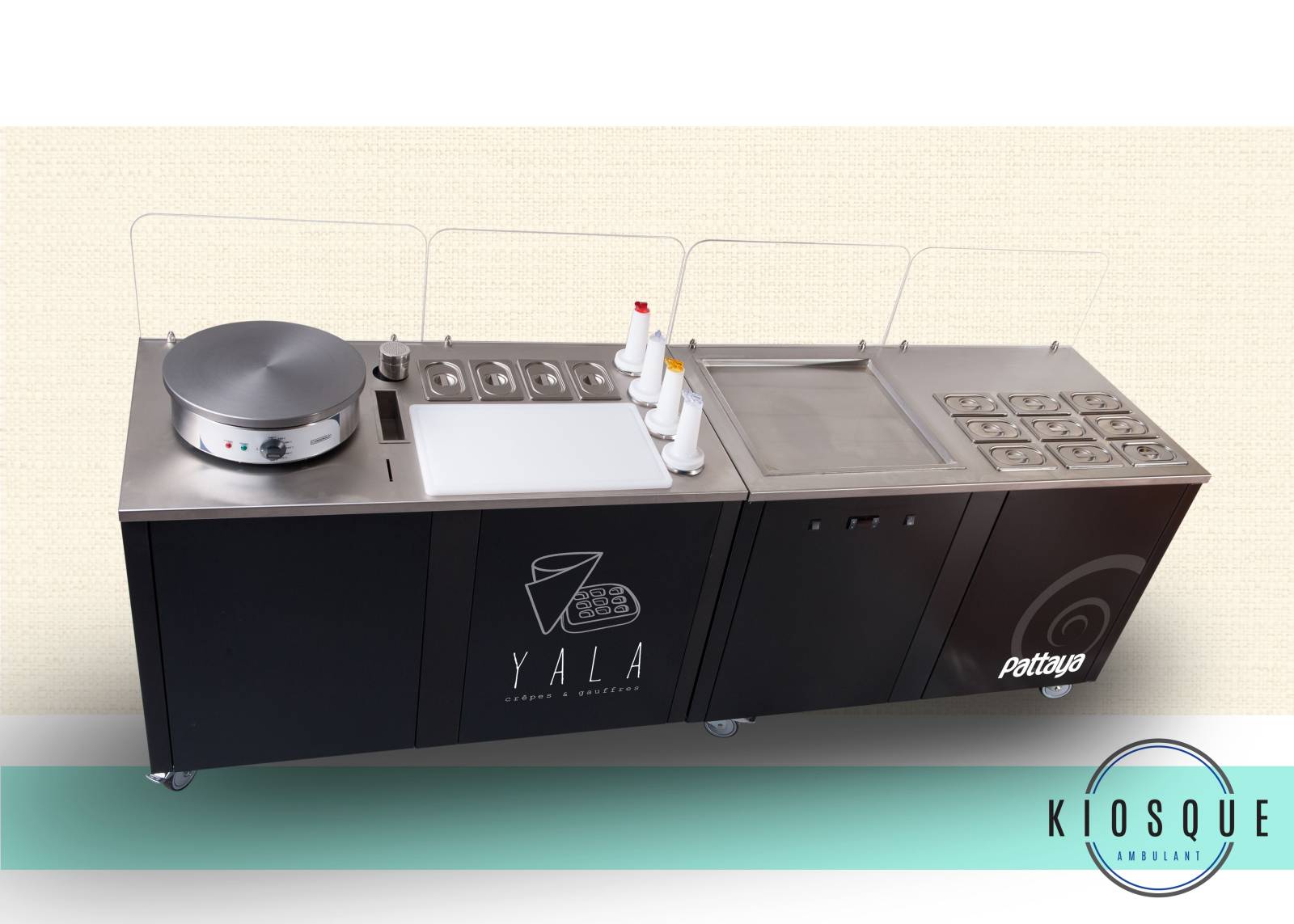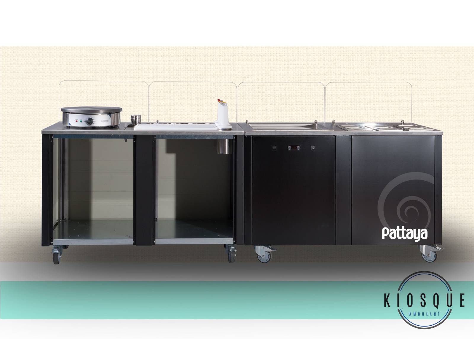 Ce chariot ambulant crêpes et glace démontable bénéficie d'un double espace sec sous le plan de travail afin de pouvoir entreposer des équipements comme par exemple: glacières eutectiques, réfrigérateur, congélateur Top... Chaque chariot ambulant crêpes et glaces bénéficie d’une finition en acier inoxydable noir pour. Aménager son atelier crêpes et glace dans de bonnes conditions n'est pas toujours évident. Il faut du matériel qui se déplace facilement, des équipements robustes et peu encombrant. KIOSQUE AMBULANT vous propose les meilleures solutions commerciales, designs, techniques et logistiques. Pour une installation facile du matériel CHR et pour la mise en place des prestations de type crêpes, gaufres et glaces, le chariot ambulant crêpes et glace représente la solution idéale.