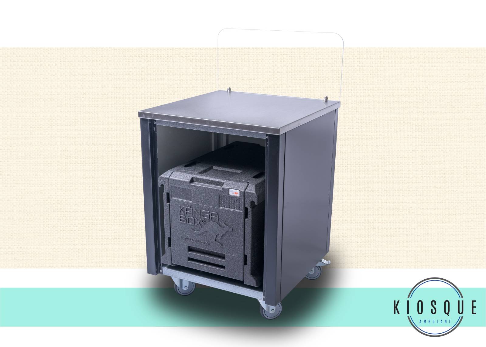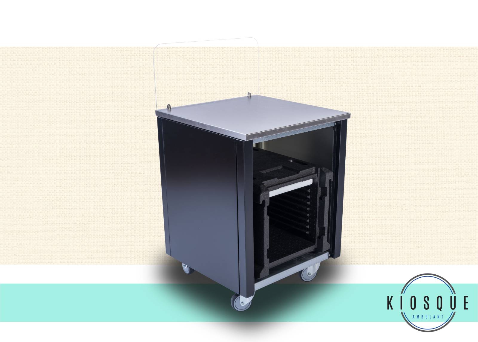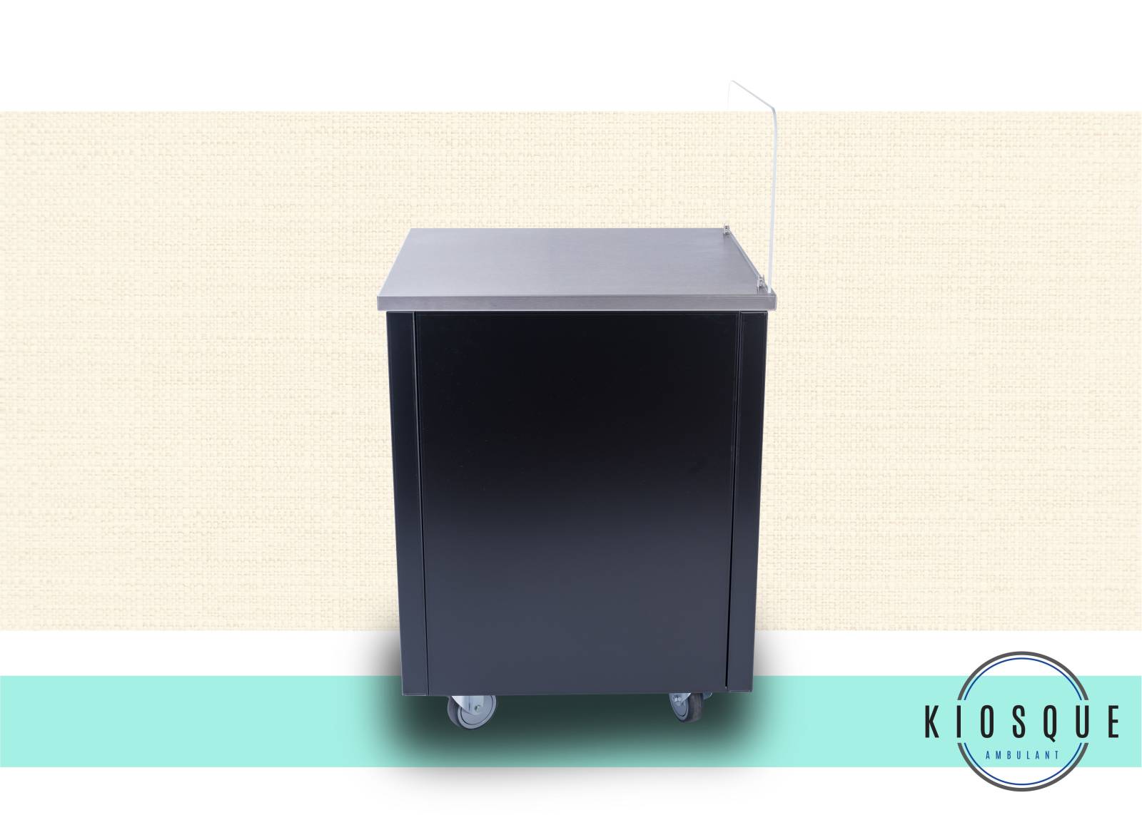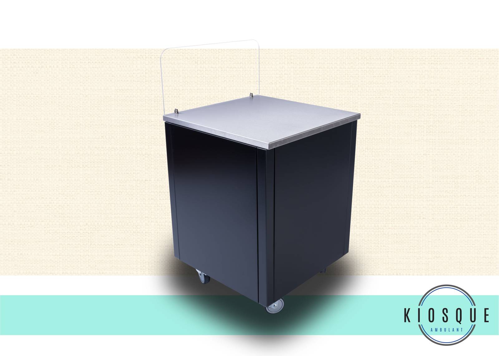 Ce petit stand ambulant en inox dispose d'un espace de stockage sec sous le plan de travail pour tous équipements (glacières eutectiques, réfrigérateur, congélateur Top...). Ce stand bénéficie d'une finition en acier inoxydable noir pour un rendu élégant. Rendre sa cuisine plus mobile et dans de bonnes conditions n'est pas toujours facile à mettre en place. Il faut des meubles facilement déplaçables, des équipements robustes et peu encombrants. KIOSQUE AMBULANT vous propose les meilleures solutions commerciales, designs, techniques et logistiques. Pour une installation facile de votre materiel CHR et pour la mise en avant des prestations de type traiteur, le petit chariot ambulant inox est idéal pour une utilisation quotidienne.