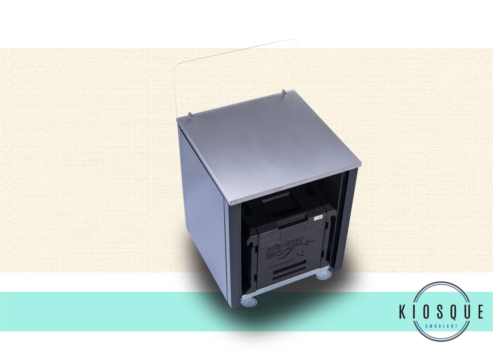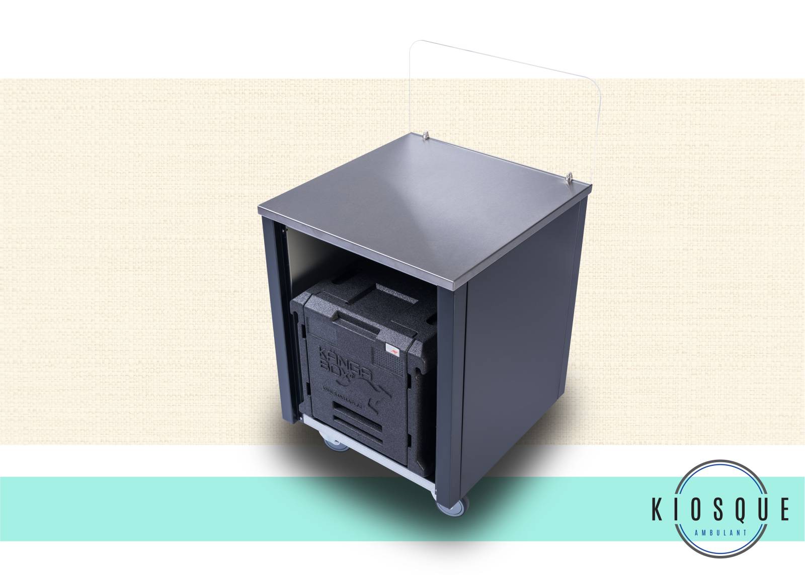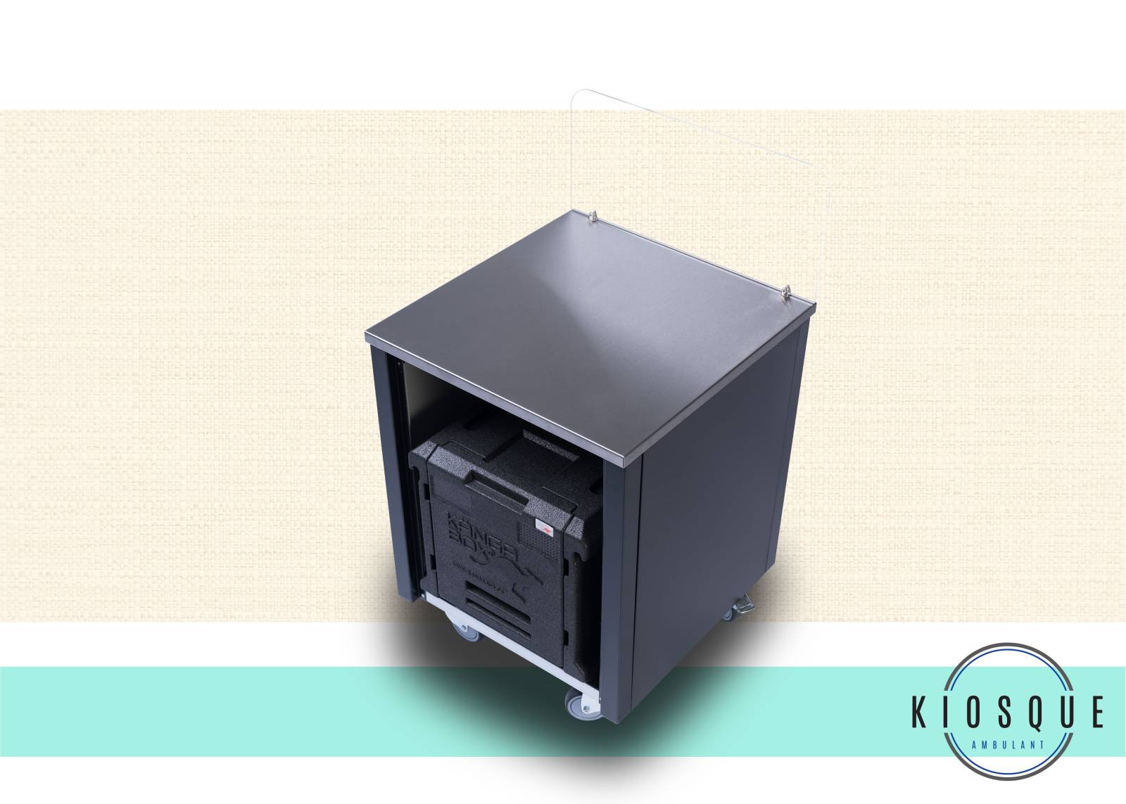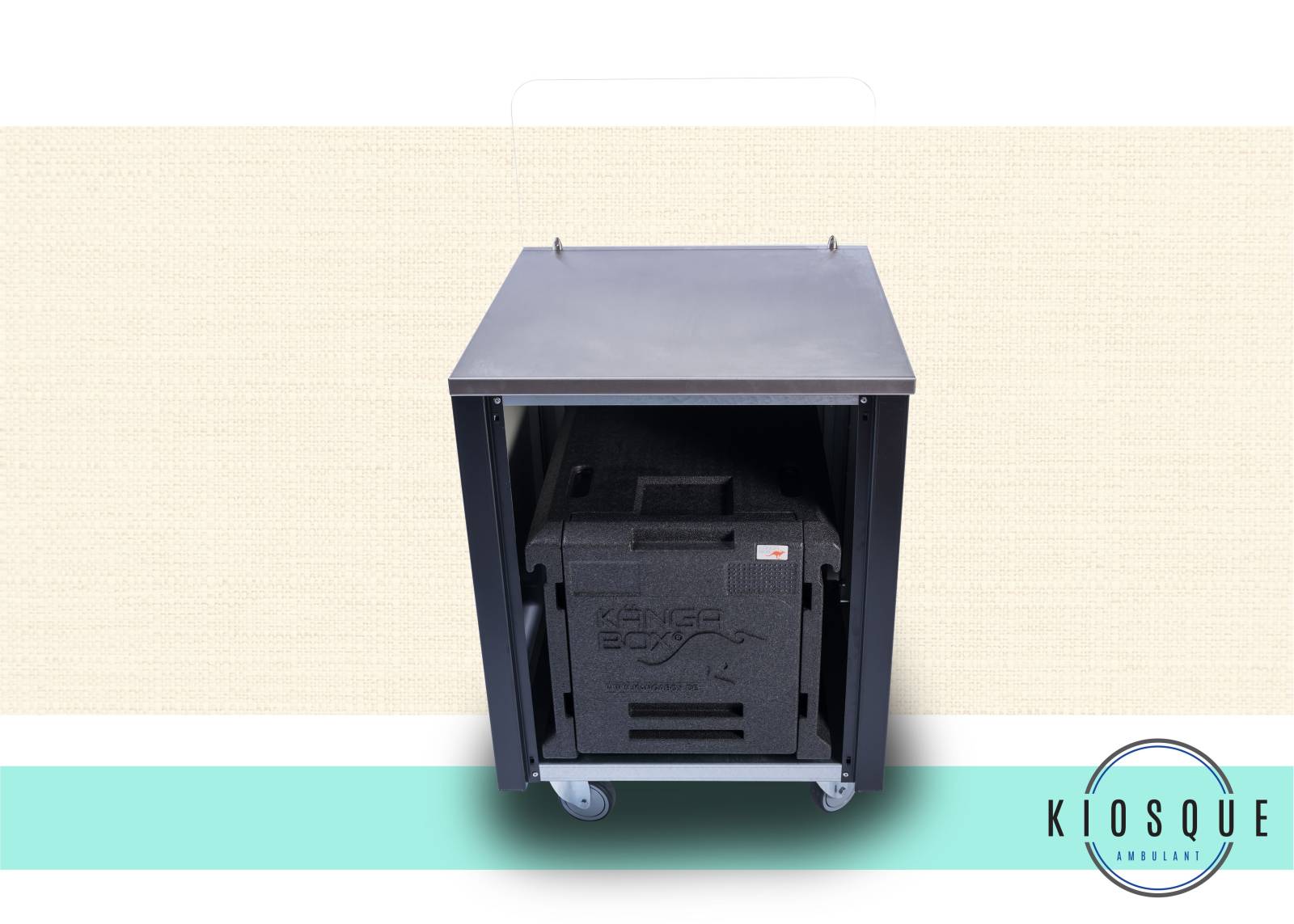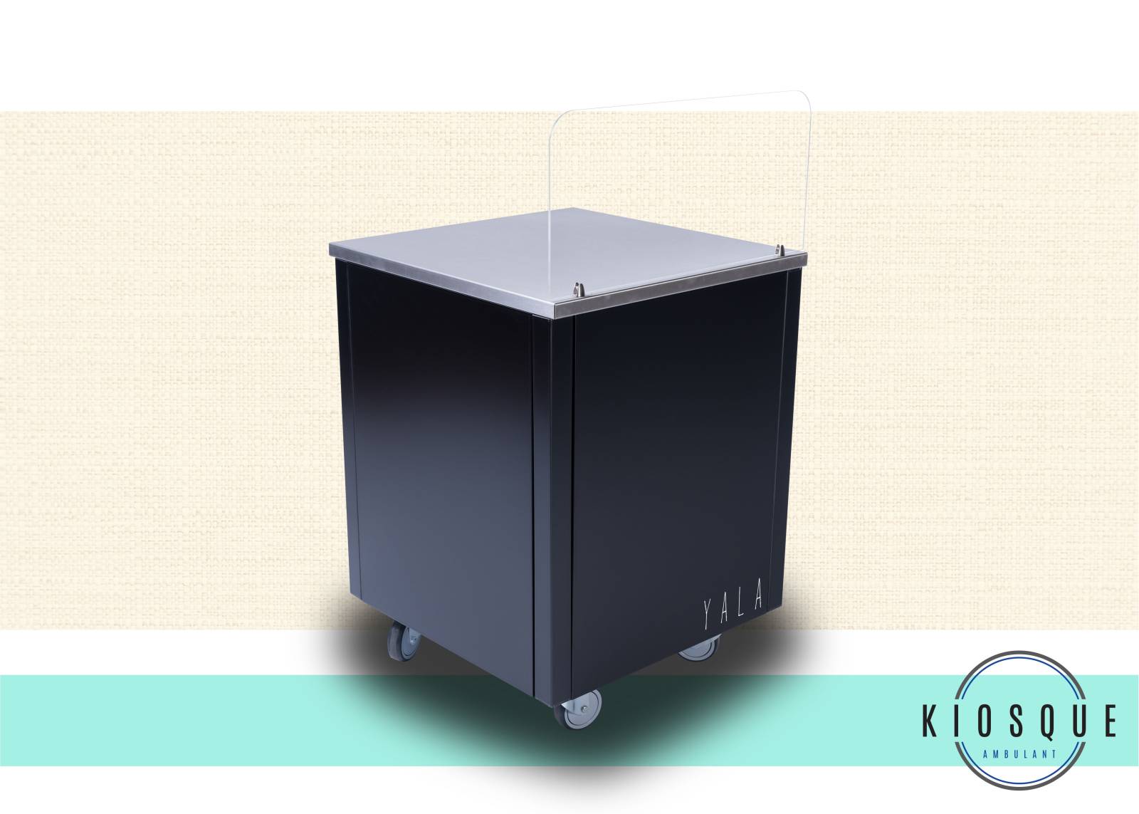 Ce petit stand ambulant en inox dispose d'un espace de stockage sec sous le plan de travail pour tous équipements (glacières eutectiques, réfrigérateur, congélateur Top...). Ce stand bénéficie d'une finition en acier inoxydable noir pour un rendu élégant. Rendre sa cuisine plus mobile et dans de bonnes conditions n'est pas toujours facile à mettre en place. Il faut des meubles facilement déplaçables, des équipements robustes et peu encombrants. KIOSQUE AMBULANT vous propose les meilleures solutions commerciales, designs, techniques et logistiques. Pour une installation facile de votre materiel CHR et pour la mise en avant des prestations de type traiteur, le petit chariot ambulant inox est idéal pour une utilisation quotidienne.