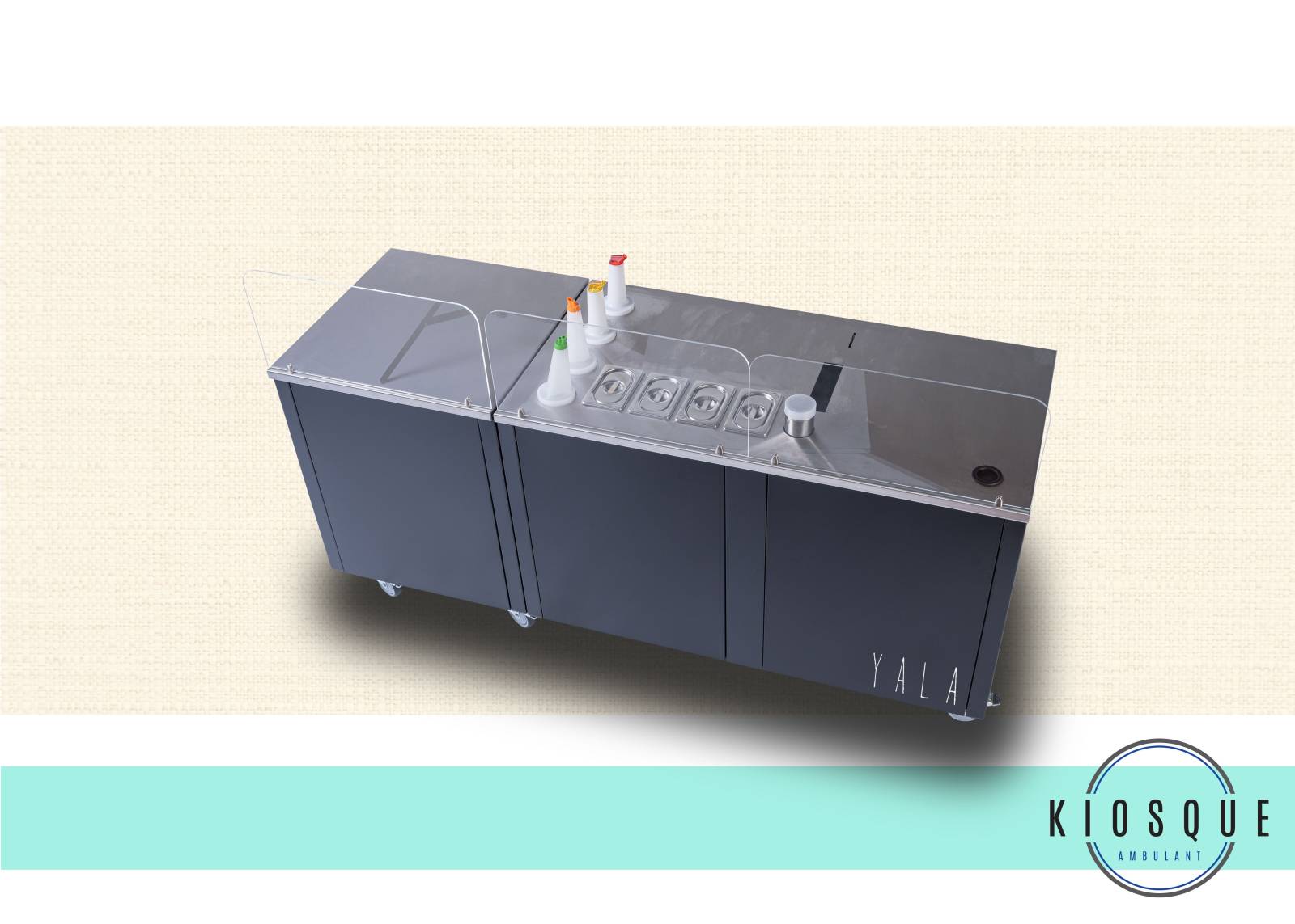 Un chariot ambulant modulable adapté pour les professionnels de la restauration et de la vente ambulante. Avec le chariot mobile aménageable, connectez les chariots de la gamme YALA les uns aux autres pour obtenir une cuisine mobile sur-mesure. Ce chariot de vente ambulante modulable est étudié pour la préparation sur place, la vente ambulante.