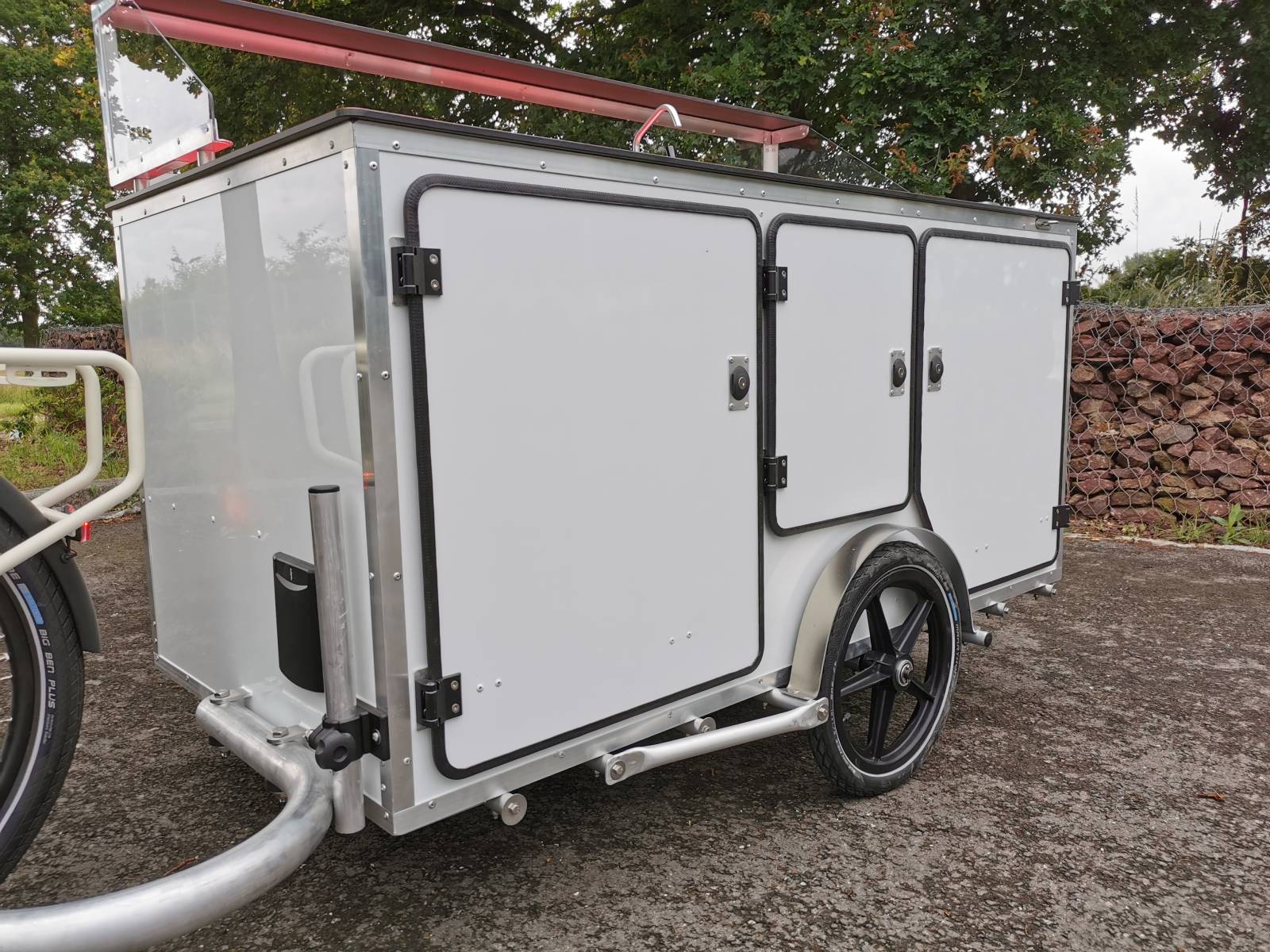 Conçu pour répondre aux besoins des professionnels CHR, ce chariot remorque existe en 5 dimensions pour permettre l'accès à de multiples lieux mais également pour faciliter son transport à vélo ou dans un véhicule. La remorque est équipée de quatre grandes portes qui permettent facilement l'accès aux différents compartiments pour garantir un service rapide et efficace.