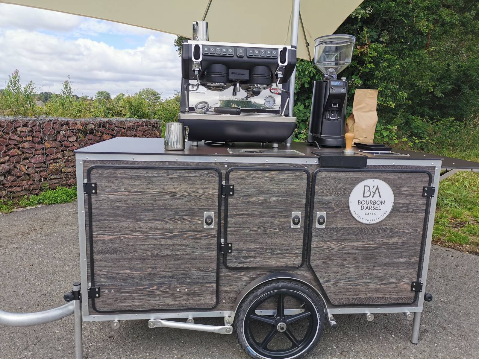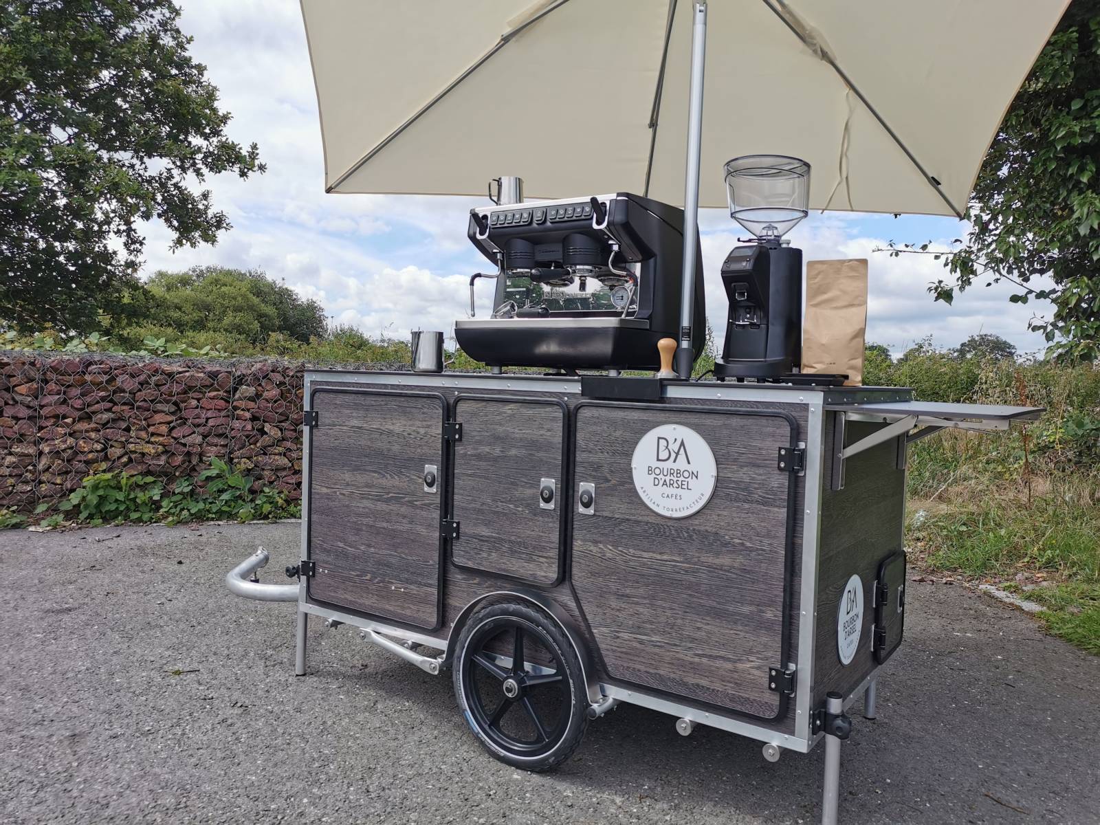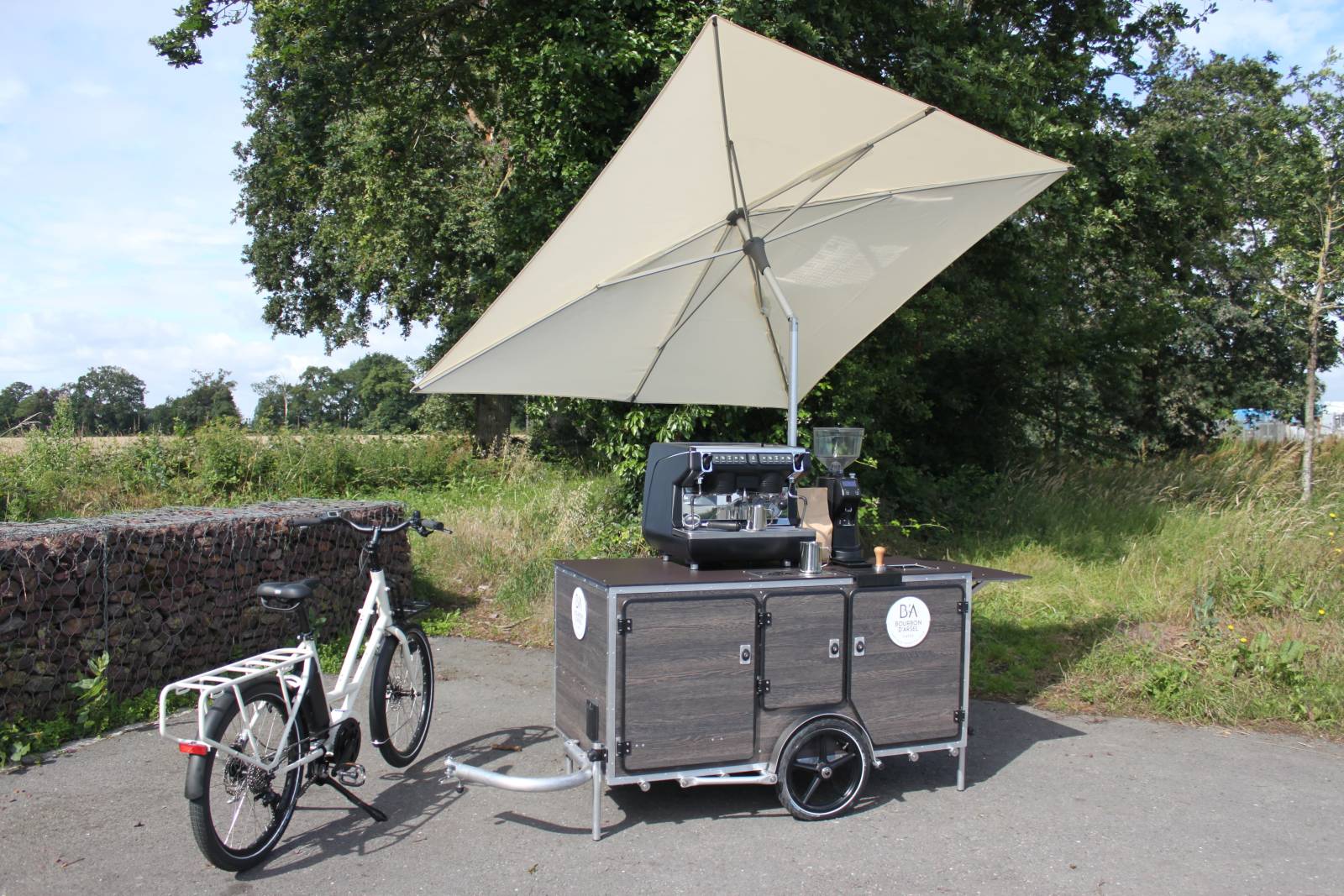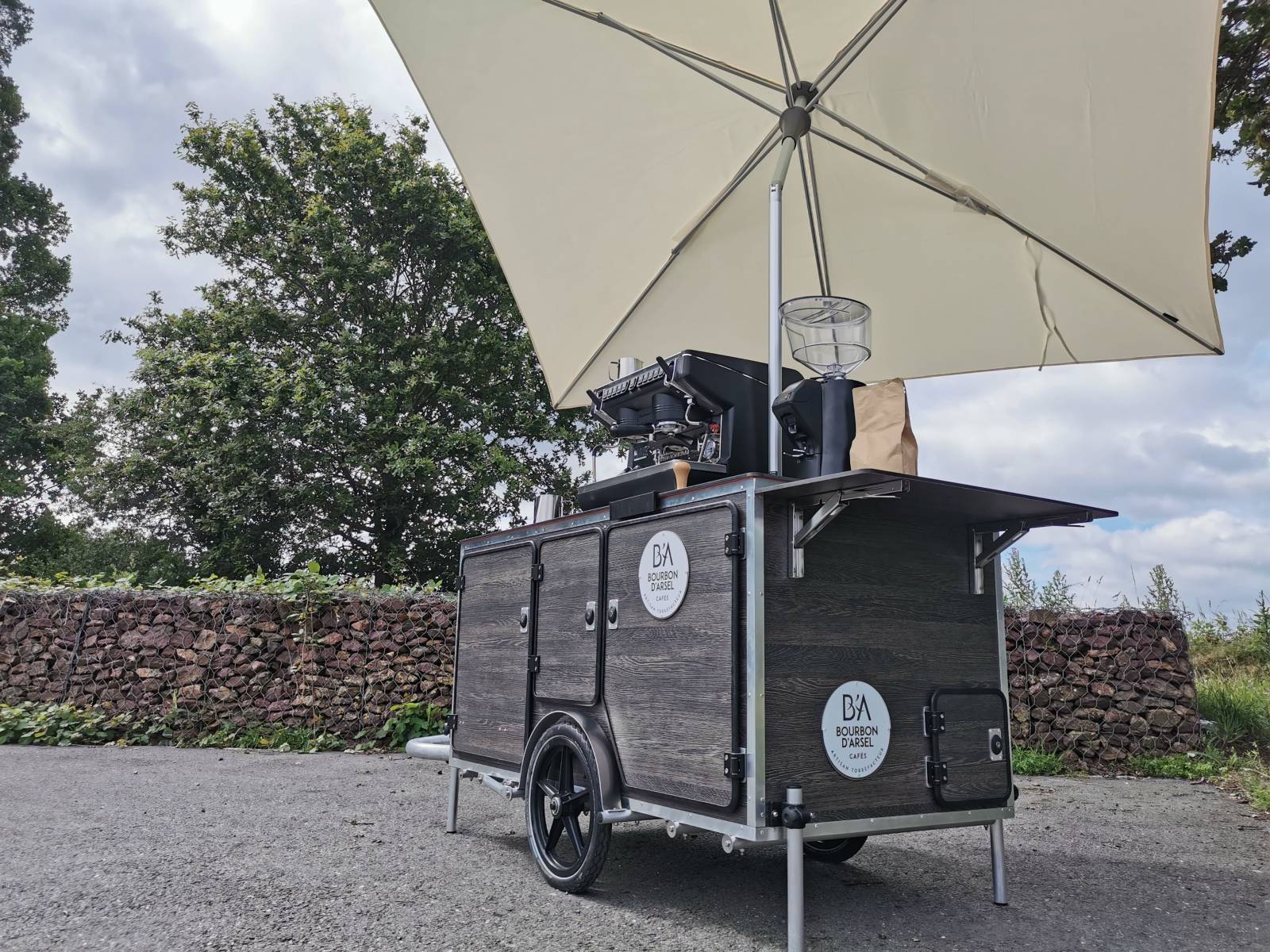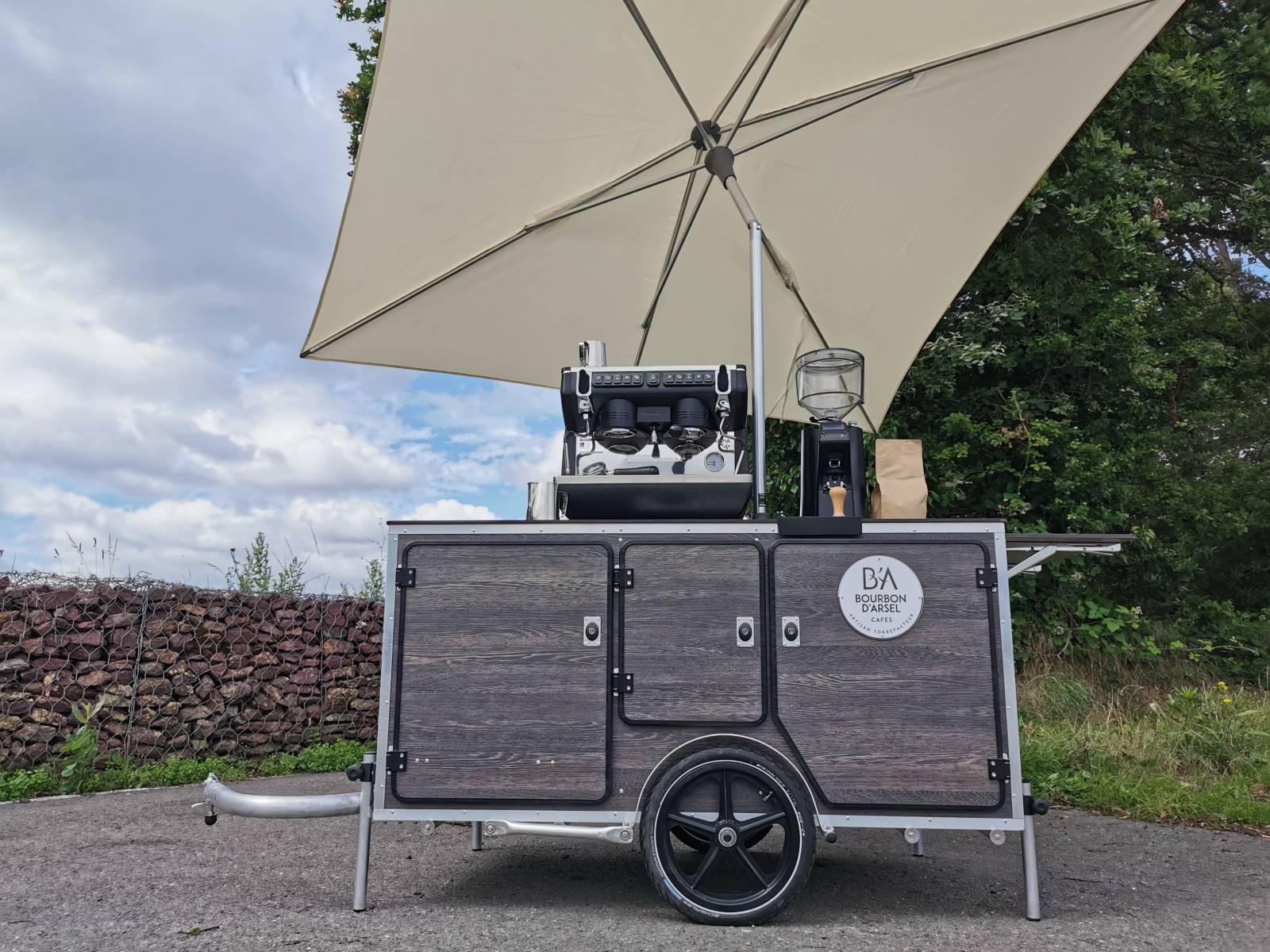 Notre remorque associe parfaitement la mobilité et l'élégance. Grâce à cette remorque, vous pouvez désormais déployer la vente de café au-delà de la terrasse de votre café, directement dans les rues animées, lors d'événements. Ce concept est entièrement pensé pour répondre aux besoins des baristas, et notamment de pouvoir soutenir le poids d'une machine à café professionnelle. De plus, nous avons inclus un évier pour le rinçage du verre, un espace pour le marc de café, ainsi qu'un perçage pour les câbles électriques de la machine.